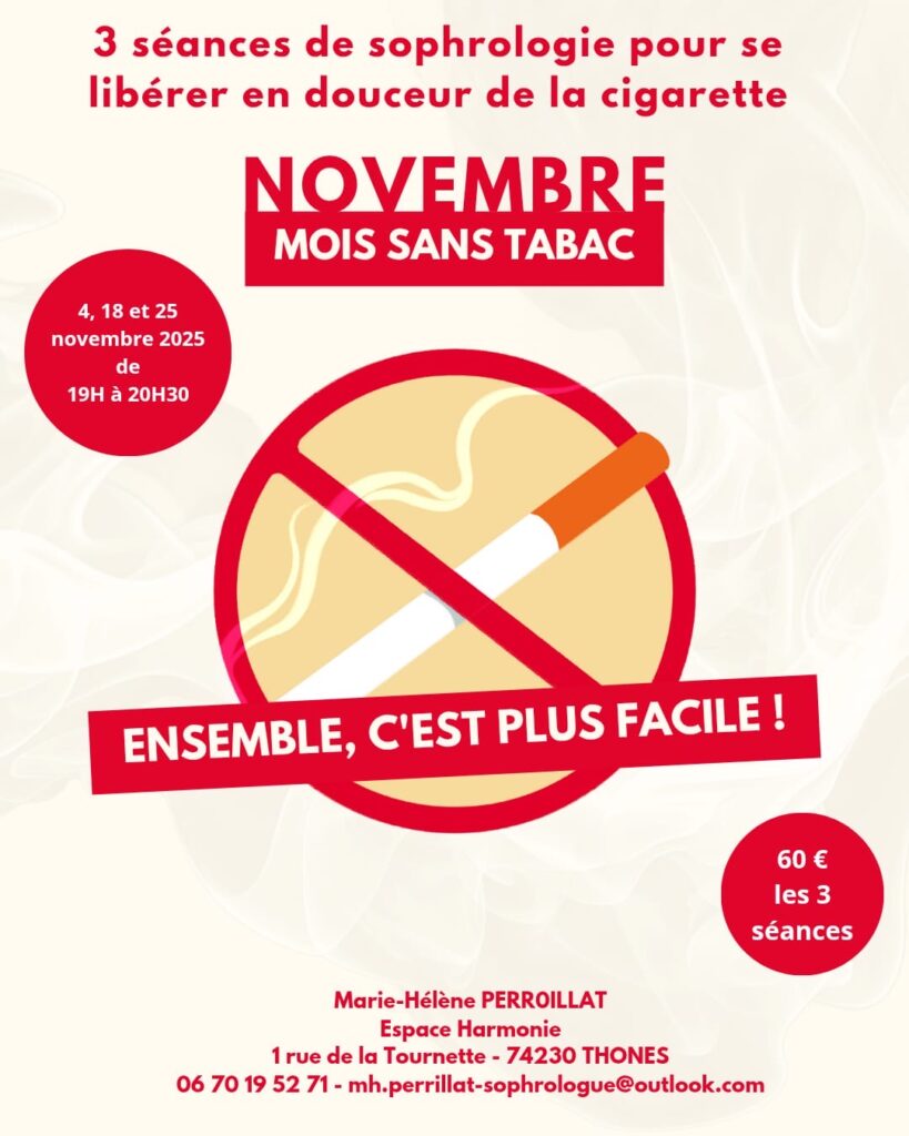Mois sans tabac ! Et si vous profitiez de novembre pour respirer autrement ? Je propose d’accompagner, avec bienveillance et sans jugement, les personnes qui souhaitent : se préparer mentalement à arrêter de fumer, gérer le stress et les envies liées au sevrage, retrouver confiance et motivation, apaiser le corps et le mental pendant cette […]